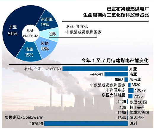 報告數(shù)據(jù)顯示,如果目前全球在建或是待建的燃煤電廠全部投產(chǎn),在其40年左右的生命周期內(nèi),預計將排放2202.41億噸二氧化碳,超出了將氣溫增加控制在1.5攝氏度之內(nèi)的排放量大約66%。