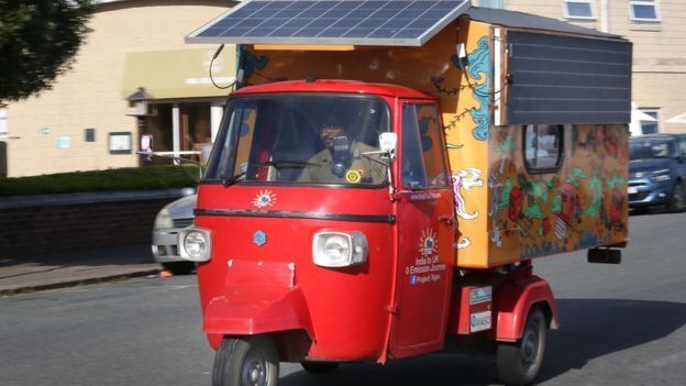 據(jù)報道,拉貝里此舉的目的在于提高人們對電動及太陽能車輛的關(guān)注。由拉貝里自行改裝的三輪車配有床、乘客座椅、太陽能爐灶和櫥柜,櫥柜里還裝著沿途人們贈送的食物。拉貝里說最值得一提的要數(shù)一路上人們對他的幫助和支持。他們很喜歡他的三輪車,還會和他的三輪車自拍。