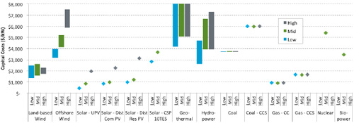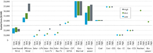圖2:“2016 Annual Technology Baseline”各類電源的設(shè)備投資額(2030年)(出處: 國(guó)家可再生能源實(shí)驗(yàn)室)