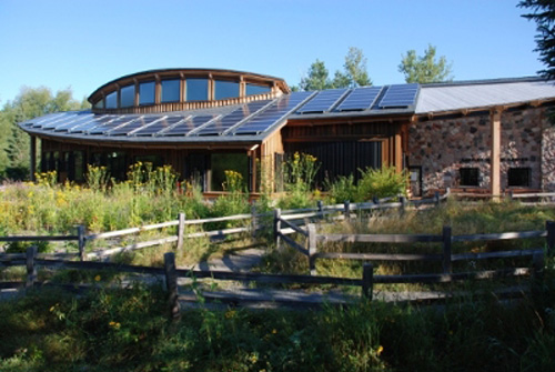 在美國明尼蘇達州德盧斯的哈特利自然中心和屋頂上設置的太陽能電池板(攝影:Sunverge Energy)