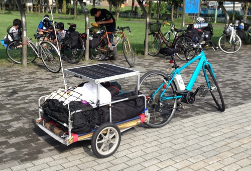 行駛使用的電動(dòng)助力自行車和配備光伏發(fā)電系統(tǒng)的拖車(出處:Veranda de Solar開發(fā)項(xiàng)目)