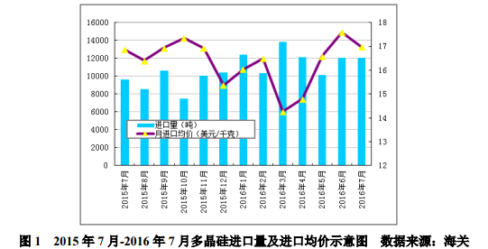 中國儲(chǔ)能網(wǎng)訊:根據(jù)海關(guān)最新數(shù)據(jù)統(tǒng)計(jì),2016年7月份我國多晶硅進(jìn)口量依舊維持在萬噸以上,達(dá)到12082噸,環(huán)比增加0.22%,同比大幅增加25.0%。2016年截止7月份,七個(gè)月單月進(jìn)口量均在萬噸以上,其中有五個(gè)月單月進(jìn)口量都超過1.2萬噸,1-7月份累計(jì)進(jìn)口多晶硅83016噸,同比增加19.0%。導(dǎo)致多晶硅進(jìn)口量持續(xù)維持在萬噸以上的原因主要是: