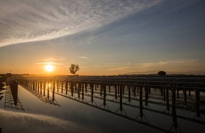 據(jù)悉,該項(xiàng)目利用磯山湖水產(chǎn)場(chǎng)部分保水保肥能力差的沙質(zhì)魚池,架設(shè)光伏板進(jìn)行光伏發(fā)電,實(shí)行水上發(fā)電,水下養(yǎng)魚的新模式,提高了水面資源利用效率。
