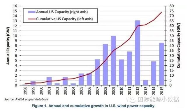 中國儲能網(wǎng)訊:根據(jù)美國勞倫斯伯克利國家實(shí)驗(yàn)室最近發(fā)布“風(fēng)電技術(shù)市場報告”,2015年美國風(fēng)電投資達(dá)到145億美元,新增裝機(jī)容量8.6吉瓦,占2015年美國新增電力裝機(jī)容量的41%。美國風(fēng)電總裝機(jī)達(dá)到74吉瓦,比2014年增加12%。