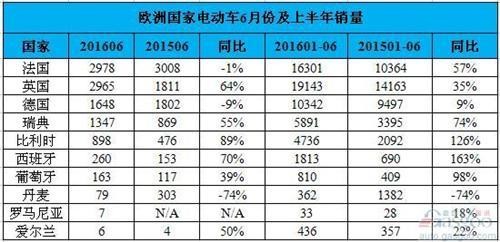 葡萄牙規(guī)定純電動車可享補貼2,250歐元,插電式混合動力車可享1,125歐元。今年6月份葡萄牙電動車銷量為163輛,較去年同期的117輛同比激增39%;上半年累計銷量為810輛,去年同期為409輛,同比飆升98%。