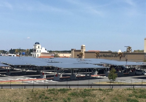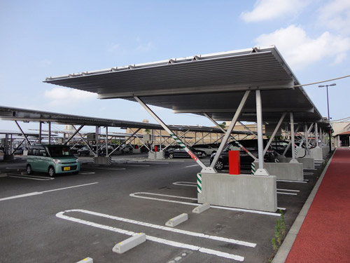 在“阿見(jiàn)奧特萊斯”設(shè)置“PV車(chē)棚”也是環(huán)保經(jīng)營(yíng)的一部分。停車(chē)場(chǎng)的光伏發(fā)電電力不依固定價(jià)格收購(gòu)制度(FIT)出售,而是全量在奧特萊斯內(nèi)自行消費(fèi)。