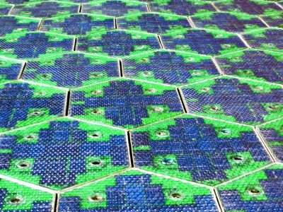 經(jīng)過(guò)不懈努力,布魯索夫婦發(fā)明出一種正六邊形的太陽(yáng)能電池板(Solar Roadway),其表面是一種超耐磨的特殊玻璃,承重最高達(dá)125噸,能保證汽車(chē)的安全行駛。同時(shí),太陽(yáng)能電池板的最底層使用的是回收塑料顆粒,綠色環(huán)保。太陽(yáng)能電池板被發(fā)明出來(lái)后,布魯索夫婦就在自己家的后院開(kāi)始了鋪路測(cè)試,并打造出一個(gè)模擬停車(chē)場(chǎng)。