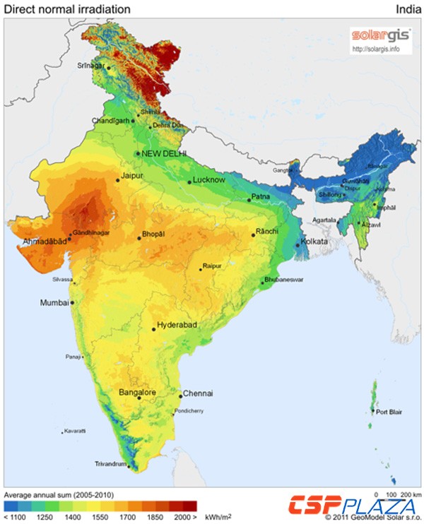 圖片1:印度DNI輻射數(shù)據(jù)(來(lái)源于Solargis)