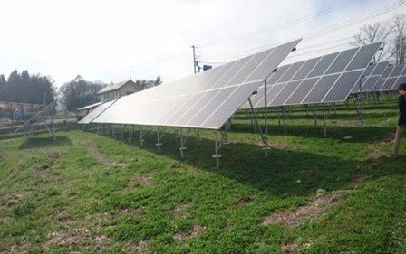 檢查的是山梨縣的40kW低壓配電線并網(wǎng)光伏電站。設(shè)置有194張?zhí)柲茈姵匕?,架臺安裝在樁基上。