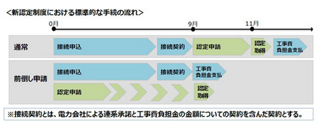 除此之外,在新認(rèn)證制度的申請手續(xù)方面規(guī)定,為了加快新認(rèn)證制度的申請流程,無論有沒有簽訂并網(wǎng)協(xié)議,都可以提前申請認(rèn)證。還有并網(wǎng)協(xié)議附帶的工程費負擔(dān)金向電力公司的支付期限,原則上是簽訂協(xié)議之后的1個月內(nèi)。