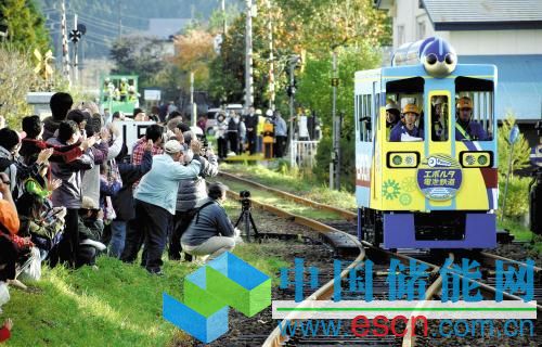 這輛電車使用了600節(jié)松下EVOLTA干電池,車廂由鐵和膠合板組成,長4.1m,寬1.5m,高2.9m,重1.1噸。在揭開 “EVOLTA電池鐵路”的標志牌后,列車載著學生及吉尼斯工作人員共9人于中午12時32分從前鄉(xiāng)站出發(fā)。