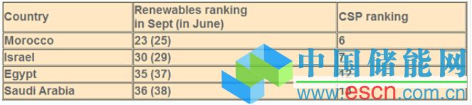 下表列出了中東北非地區(qū)上榜國家的可再生能源市場及光熱發(fā)電市場的詳細排名: