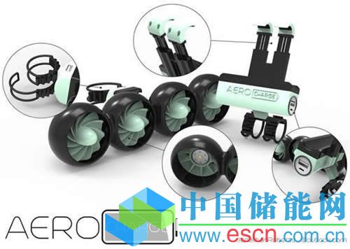 這款充電寶名為AeroCharge,可以綁在自行車車把處,騎行時(shí)可以將風(fēng)力轉(zhuǎn)化為電力,讓你你的移動智能設(shè)備隨時(shí)隨地都可以充滿電。