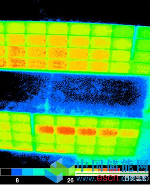 利用紅外相機(jī)拍攝的圖像,熱點(diǎn)等與周圍的電池板相比溫度相對(duì)較高的位置就可能會(huì)發(fā)生某種故障。