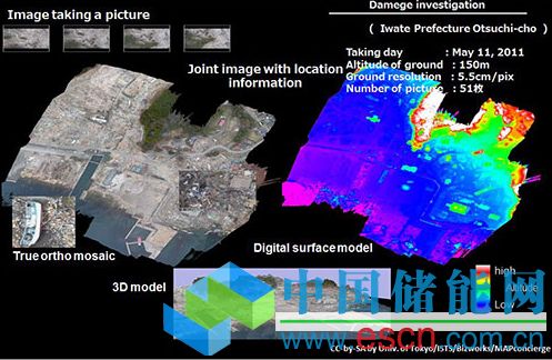 此外,該公司還致力于軟件的開發(fā),用于航拍圖像的合成和分析。最近,因?qū)φ莆諙|日本大地震的受災(zāi)情況等提供支援而聞名(圖4)。