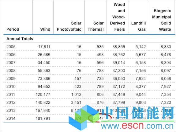 圖:美國能源信息署(EIA)對(duì)全球可再生能源凈發(fā)電量的數(shù)據(jù)統(tǒng)計(jì)