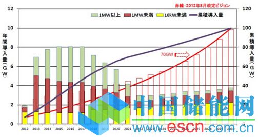 JPEA于2013年12月發(fā)行了“JPEA PV Outlook 2030”,提出了“2030年日本的光伏發(fā)電累計(jì)導(dǎo)入量目標(biāo)為100GW”。2015年4月又出了其姊妹篇,將2013年版中2020年日本的累計(jì)導(dǎo)入量49.4GW的預(yù)測上調(diào)到了65.7GW。