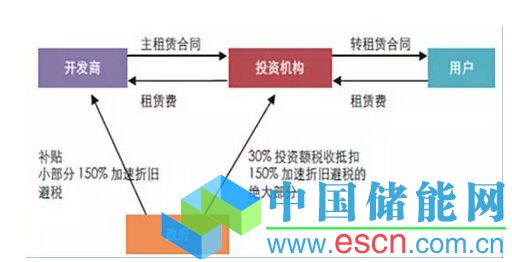 在轉(zhuǎn)租模式下,投資機構(gòu)與開發(fā)商(Solarcity)簽訂主租賃合同,租賃開發(fā)商承建的電站,然后投資機構(gòu)再將光伏電站轉(zhuǎn)租給用戶。在這一模式下,投資機構(gòu)收益的主要來源為用戶租金,30%的投資稅收減免以及加速折舊避稅絕大部分;開發(fā)商(Solarcity)的來源則主要為投資機構(gòu)支付的租賃費、電價補貼、加速折舊避稅的小部分。