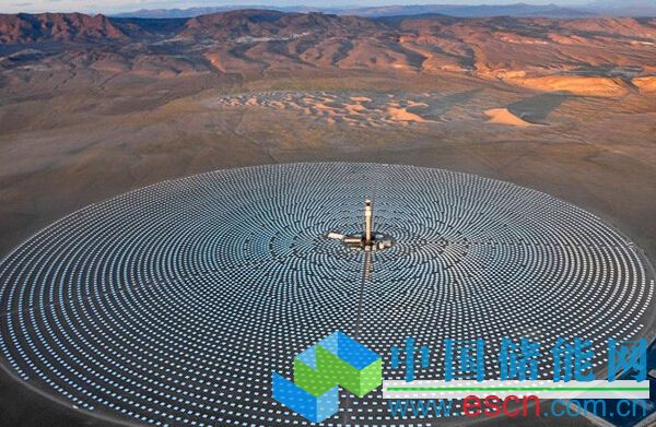 圖:位于美國內(nèi)華達(dá)州裝機(jī)110MW的新月沙丘塔式熔鹽光熱電站