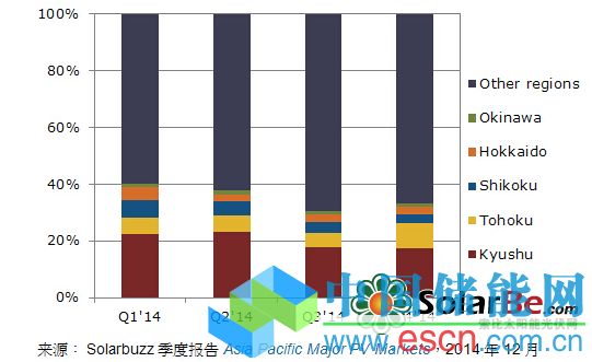 Solarbuzz分析師胡丹指出:“雖然在三季度末,日本五個(gè)區(qū)域電力公司提出對(duì)非居民項(xiàng)目的并網(wǎng)審批暫停,但我們認(rèn)為仍不會(huì)顯著影響2015年日本市場(chǎng)需求,主要原因是已經(jīng)獲批的光伏儲(chǔ)備項(xiàng)目量較大,并且這些項(xiàng)目不受暫停并網(wǎng)審批的影響。”據(jù)統(tǒng)計(jì)2014年這五個(gè)區(qū)域電力公司的光伏裝機(jī)需求約占整個(gè)日本市場(chǎng)的35%左右。