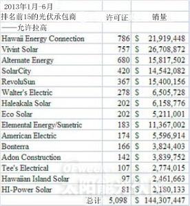 中國(guó)儲(chǔ)能網(wǎng)訊:不久前,太陽(yáng)能發(fā)電行業(yè)是瓦胡島最熱門的建筑行業(yè)。今天,它沉沒了。根據(jù)Honolulu市、縣規(guī)劃許可部門提供的2014年1月到6月光伏發(fā)電系統(tǒng)許可數(shù)據(jù),已發(fā)布光伏許可總數(shù)比去年同期下降了43%,且項(xiàng)目總值下降了50%以上。