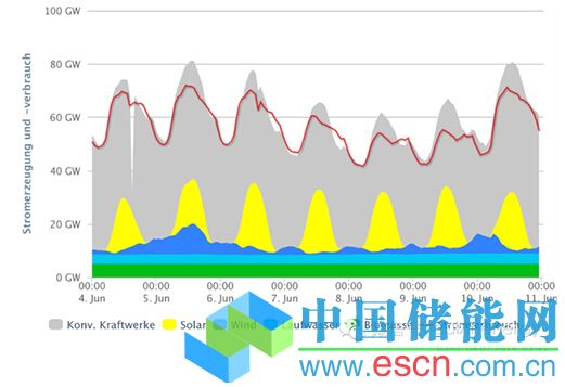 中國(guó)儲(chǔ)能網(wǎng)訊:前不久看到中國(guó)的媒體上,有一篇關(guān)于德國(guó)2014年6月9日光伏發(fā)電出力超過(guò)50%的報(bào)道,深入分析了當(dāng)日陽(yáng)光普照的德國(guó)是如何做到保障如此高比率的光伏發(fā)電接入的。是的,自從2013年8月初首次出現(xiàn)超過(guò)22GW的光伏發(fā)電出力以來(lái),德國(guó)安裝總量超過(guò)35GW的光伏組件們?cè)诮衲晏鞖馇绾玫臍夂驐l件下,屢創(chuàng)新高,大比例的接入電網(wǎng)早已是家常便飯。