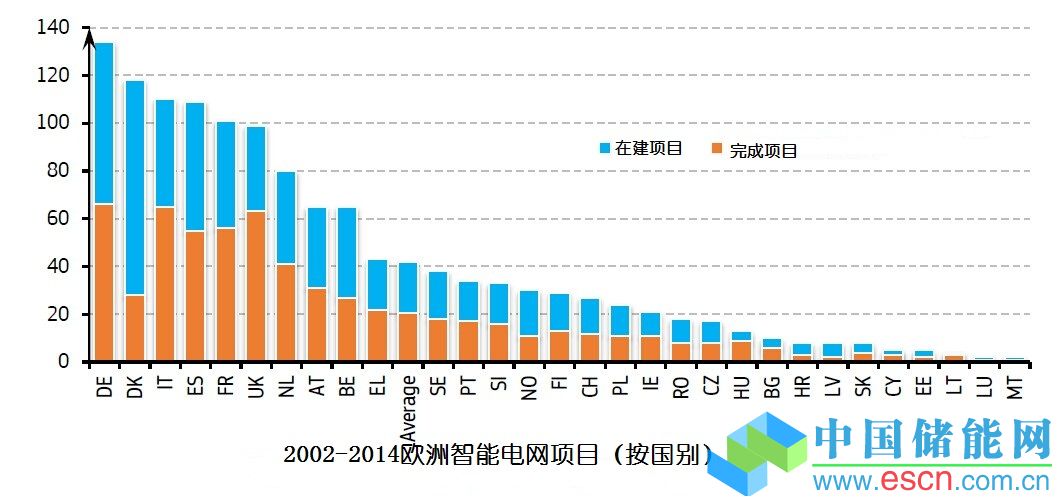 據(jù)歐洲聯(lián)合研究中心(JRC)統(tǒng)計(jì)數(shù)據(jù)顯示,2002-2014年,歐洲共開(kāi)發(fā)智能電網(wǎng)項(xiàng)目459個(gè),累計(jì)投入達(dá)到31.5億歐元(約合人民幣195.5億元),其中,在建項(xiàng)目221個(gè),投入約20億歐元(約合人民幣124億元),完成項(xiàng)目238個(gè),投入約11.5億歐元(約合人民幣71.4億元)。