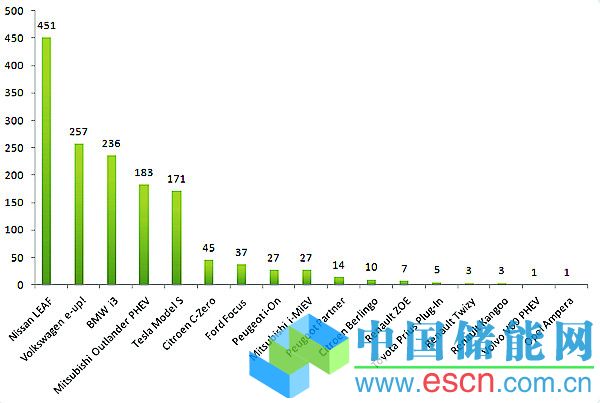 德國電動汽車品牌的銷量依然強(qiáng)勁,4月份大眾e-up!在挪威銷售了257臺,寶馬i3銷售了236臺。其它品牌中,雪鐵龍C-Zero售出45臺,雪鐵龍iOn售出27臺,三菱i-MiEV售出27臺,這三個(gè)品牌的銷量共達(dá)99臺。