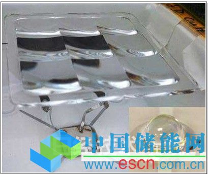 透鏡分兩級(jí),第一個(gè)透鏡是由大約2cm見方的透鏡粘接而成,第二個(gè)透鏡(右下角放大圖像)是直徑為2mm的球形透鏡,通過兩個(gè)透鏡的共同作用來實(shí)現(xiàn)1000倍的聚光。