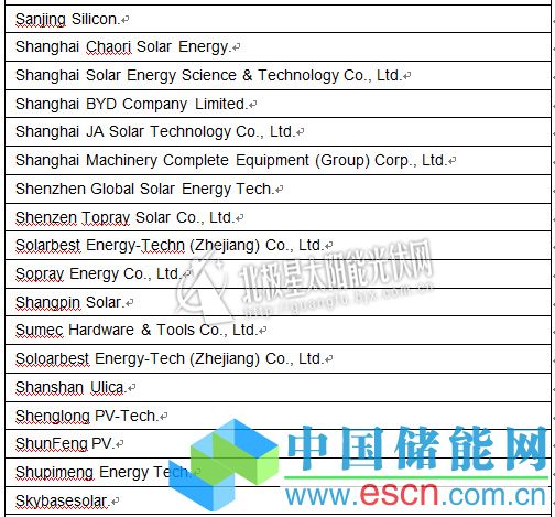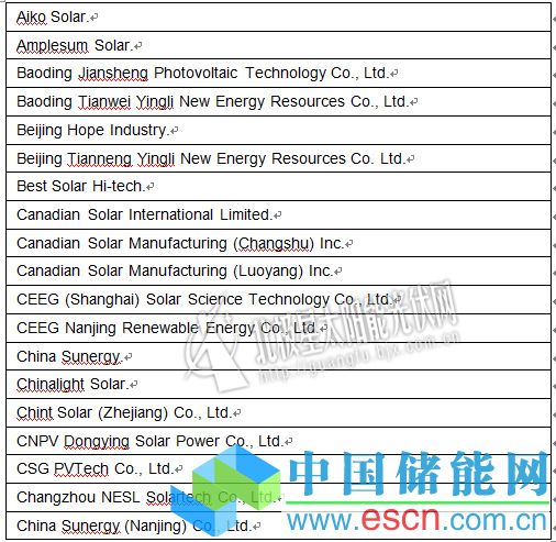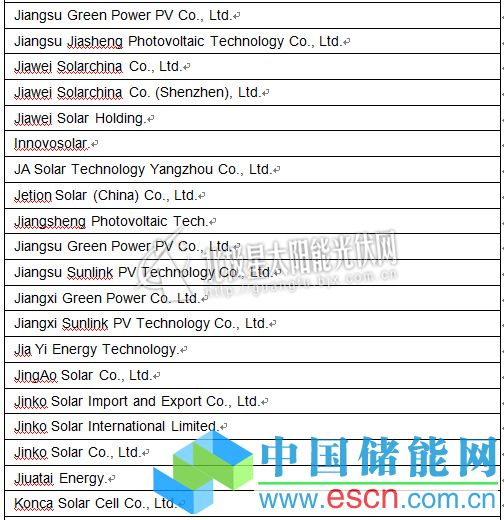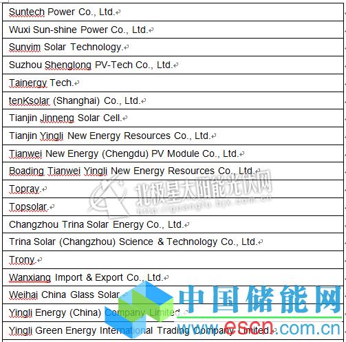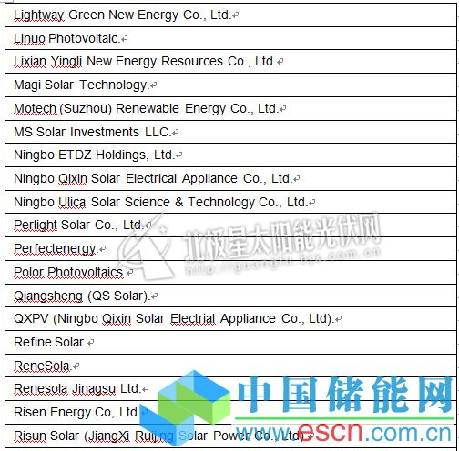 美對華光伏反補(bǔ)貼問卷企業(yè)公示(名單)