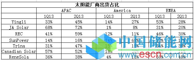 中國儲能網訊:受到中歐貿易紛爭以及亞洲市場崛起的影響,太陽能廠商在1H13紛紛重新啟動企業(yè)策略布局。全球市場研究機構TrendForce旗下新能源事業(yè)處EnergyTrend針對上半年各太陽能廠出貨及營收調查顯示,中國大廠明顯降低歐洲出貨占比,將重心轉向中國內需市場以及日本等其他亞洲市場。