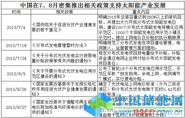 EnergyTrend表示,先前中歐兩方貿易戰(zhàn)消息眾說紛紜之時,中國政府為協(xié)助太陽能企業(yè)發(fā)展,在7、8月積極推出支援太陽能發(fā)展相關政策,力圖推動中國市場需求以消化廠商產能。整體來看,2013到2015年可能以6、10、12GW的安裝量,分階段沖刺2015年前總安裝量35GW的目標,此外也頒布光伏電站上網電價標準和分布式光伏發(fā)電每千瓦時0.42元的補貼標準,并宣示加強抑制太陽能產能盲目擴張,顯示中國政府加大力道調整太陽能產業(yè)結構。EnergyTrend認為,第四季太陽能市場主要會由中、日、美等市場主導,而中國又是其中最具發(fā)展?jié)摿Φ氖袌?,中國市場的變化將牽動中國多數太陽能企業(yè)走向,進而影響全球太陽能產業(yè)發(fā)展。