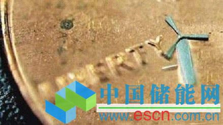 迷你風(fēng)電機(jī)放在一美分硬幣上對(duì)比,可見(jiàn)體積極小