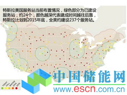 目前全美特斯拉快充服務(wù)站大概有24個已經(jīng)正式投入經(jīng)營,主要覆蓋美國東北部以及西南部業(yè)務(wù)比較成熟地區(qū)。特斯拉計劃在2015年底服務(wù)站將全面覆蓋美國以及加拿大靠近美國的邊緣地帶。