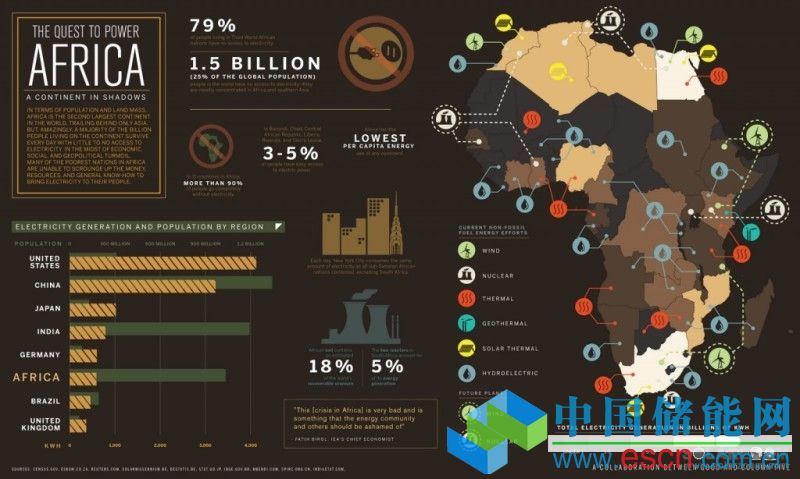 中國儲能網(wǎng)訊:不僅僅是能源的未來,而且非洲整個大陸都將依賴于可再生能源。如今眾多國家(雖然進展緩慢)正投資于能源產業(yè),但截止至目前為止,非洲電網(wǎng)仍然不能延伸至絕大多數(shù)的人口,并且僅有20%的非洲家庭用上了電。在非洲建設的無數(shù)小型分布式發(fā)電站主要是為了滿足當?shù)氐碾娏π枨?。在這樣的情況下,坐落于有利地形的可再生能源發(fā)電站(包括水電、風電、光伏及地熱)均能很好地滿足電力需求以及每個地區(qū)的特殊發(fā)電潛能。