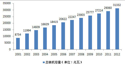 圖 德國(guó)2001-2012年風(fēng)電累計(jì)裝機(jī)容量