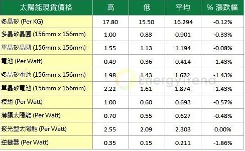 EnergyTrend最新太陽能價(jià)格調(diào)查
