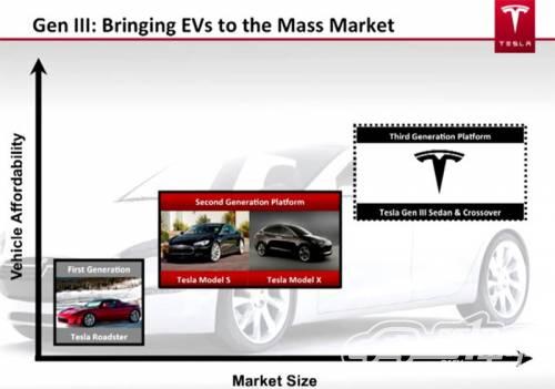 據(jù)MOTORAUTHORITY網(wǎng)站報(bào)道,特斯拉的第三代電動(dòng)車包括一款轎車和跨界車,售價(jià)比Model S和定于2014年末上市的Model X便宜得多。特斯拉CEO馬斯克表示,“第三代特斯拉電動(dòng)車擁有200英里的續(xù)駛里程,有望在3到4年內(nèi)推出。”