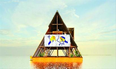 這個(gè)特別工程建在馬科科社區(qū)臟亂的水上貧民窟上,是一棟三角形的建筑物,分為三層,“地基”由塑料桶搭建,整個(gè)框架是木制結(jié)構(gòu),木材取自當(dāng)?shù)?,電力供?yīng)則由安裝在建筑物頂部的太陽能電池板支持。建成后有操場(chǎng)和綠地,可以接收約100名學(xué)生。