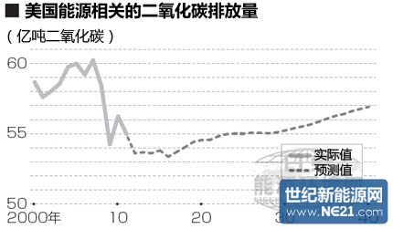 美國能源部能源信息署1月份公布的預測數(shù)據(jù)顯示,2012年二氧化碳排放量也將減少3.4%左右,從長遠來看,估計在2040年之前都不會超過2005年的水平。