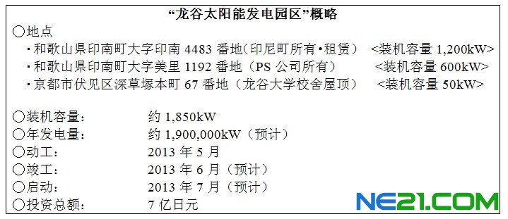 (1)PS公司及Trans Value負(fù)責(zé)引進(jìn)京瓷太陽能組件,并將此次位于龍谷大學(xué)深草校區(qū)以及和歌山縣印南町的太陽能發(fā)電系統(tǒng)統(tǒng)一命名為“龍谷太陽能發(fā)電園區(qū)”。