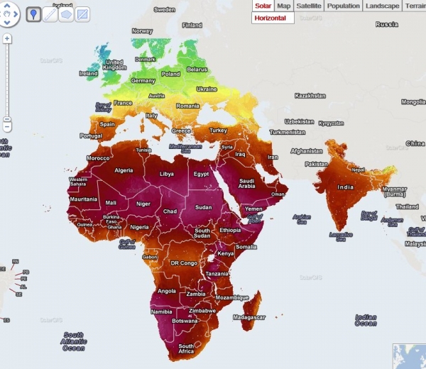 中國儲(chǔ)能網(wǎng)訊:近日GeoModelSolar發(fā)布了南非、萊索托以及斯威士蘭的新太陽能分布圖,圖中顯示了非洲大陸的太陽能直接輻射狀況。GeoModelSolar管理總監(jiān)MarcelSuri表示:“這些太陽能分布圖的獨(dú)特性反應(yīng)在其250米的極高空間分辨率。至于時(shí)間分辨率,基礎(chǔ)太陽能數(shù)據(jù)保存有18年的歷史數(shù)據(jù)(1994至今),時(shí)間步長最高可達(dá)到15分鐘。