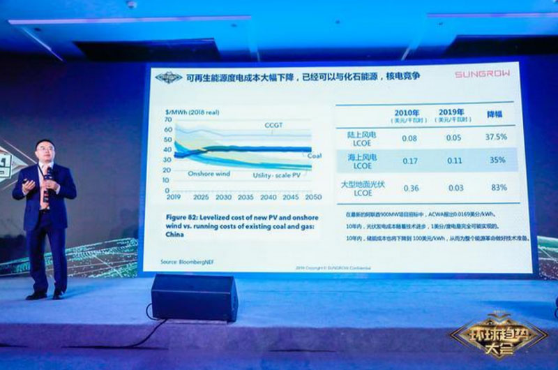 在美國得克薩斯州,陽光電源實施了當?shù)刈畲髢δ茼椖浚?0MW/42MWh)。這樣一個并不發(fā)電、單純儲能的項目發(fā)揮的作用是有效提升電網(wǎng)系統(tǒng)穩(wěn)定性。趙為表示,儲能項目就像蓄水池,接入電網(wǎng)后能夠起到非常好的支撐作用。他透露,陽光電源2019年全球儲能出貨量將超過300MWh,未來光伏電站配置一部分儲能是一大方向。