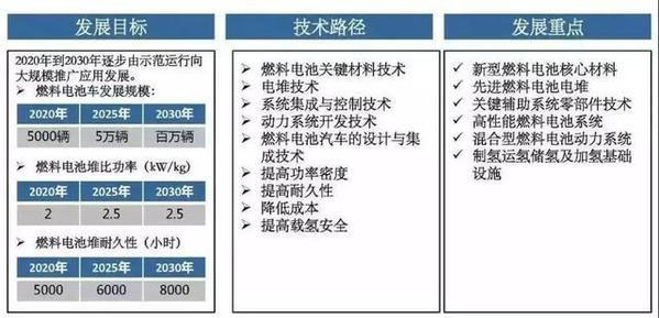 早在2017年11月,《節(jié)能與新能源汽車技術(shù)路線圖》就明確了中國燃料電池汽車的發(fā)展目標:2020年、2025年和2030年分別發(fā)展5000輛、5萬輛和百萬輛。另外,上海市已經(jīng)制訂燃料電池發(fā)展規(guī)劃,廣東、湖北等省成立了氫能和燃料電池汽車產(chǎn)業(yè)集群。