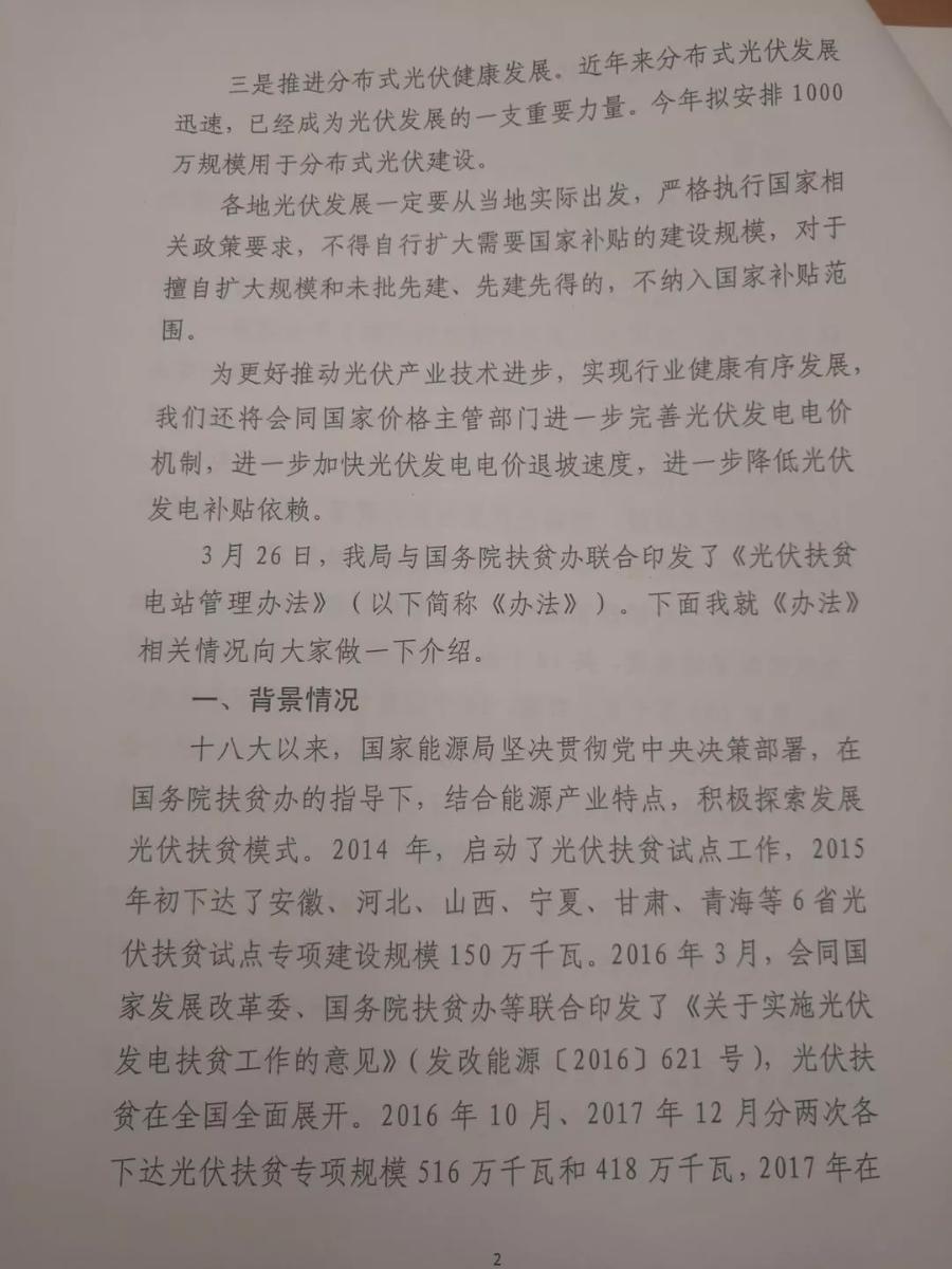 另外,新能源和可再生能源司副司長李創(chuàng)軍在答記者問時透露,可再生能源配額制(最終稿)初定今年上半年出臺?!笆濉惫夥鲐氂媱澤陥蠊ぷ?,進(jìn)展緩慢,報送質(zhì)量層次不齊。第一批就有235個縣沒通過國家扶貧辦的光伏扶貧信息管理系統(tǒng)的材料審核,申報過程中存在諸多問題。今年計劃下達(dá)第二批光伏扶貧計劃,如果各地申報的材料合格申報通過,就能早點(diǎn)下發(fā)。