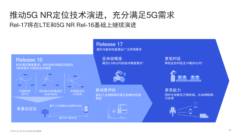 在徐晧的介紹中,讓《每日經(jīng)濟(jì)新聞》記者印象最深刻的是對(duì)5G定位技術(shù)的描述。其介紹,在垂直領(lǐng)域的應(yīng)用中,另外一個(gè)很重要的5G Rel-16版本技術(shù)就是5G NR定位。5G可支持室內(nèi)定位,這是GPS不具備的能力,再則5G定位是基于蜂窩通信而非衛(wèi)星通信實(shí)現(xiàn)的,5G定位可與其它定位技術(shù)互為補(bǔ)充。以及5G定位支持更高定位精度及更低時(shí)延,能夠滿(mǎn)足多樣化的服務(wù)需求。