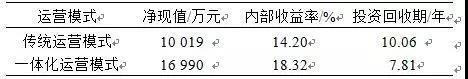 表1傳統(tǒng)運(yùn)營模式和一體化運(yùn)營模式的成本收益