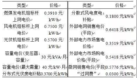未參與電力市場前,微網(wǎng)內(nèi)部分布式能源上網(wǎng)電量以當(dāng)?shù)厝济喊l(fā)電機(jī)組標(biāo)桿上網(wǎng)電價結(jié)算,外購電量以目錄銷售電價(考慮峰谷分時)結(jié)算。