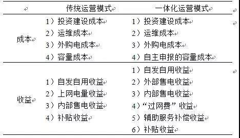 一體化運(yùn)營模式成本包括投資建設(shè)成本、運(yùn)維成本、外購電成本以及自主申報(bào)的容量成本,收益包括自發(fā)自用收益、外部售電收益、內(nèi)部售電收益、“過網(wǎng)費(fèi)”收益、輔助服務(wù)補(bǔ)償收益和補(bǔ)貼收益。