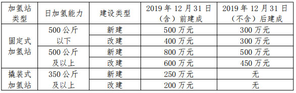 3月16日,濰坊市政府印發(fā)《濰坊市促進加氫站建設(shè)及運營扶持辦法》,對在本市進行加氫站建設(shè)、加氫站加氫的企業(yè)給予補貼。補貼資金用于企業(yè)后續(xù)生產(chǎn)經(jīng)營。該辦法自2020年4月1日起施行,有效期至2021年12月31日。補貼標(biāo)準(zhǔn)如下圖:
